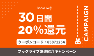ブックライブでは、8桁の友達招待コードを入力すると、30日間購入金額の20%還元で利用できます。