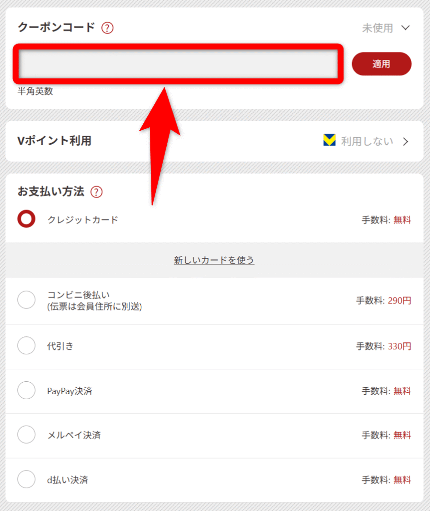 購入前にサクッとコードを入力して、お得に注文を完了させましょう!