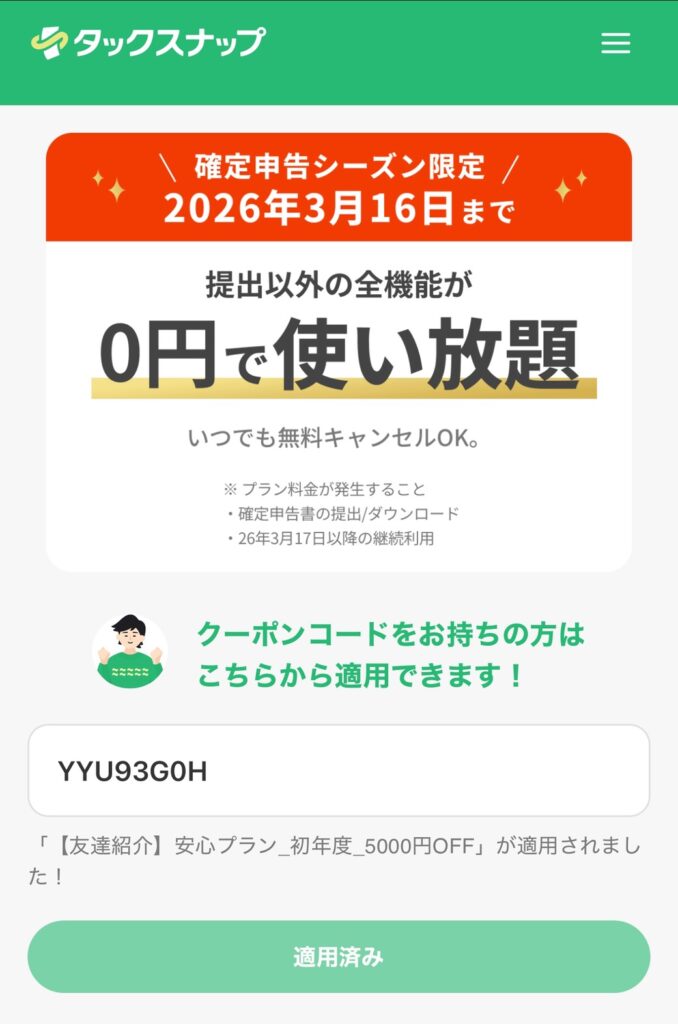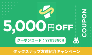当ブログ限定の紹介コードを利用すると、5,000円OFFでタックスナップが利用できます!